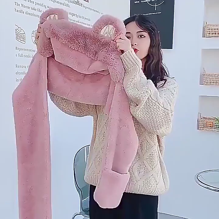 The cute set features a charming bear hat, a plush scarf, and warm gloves to envelop you in comfort from head to fingertips 😍