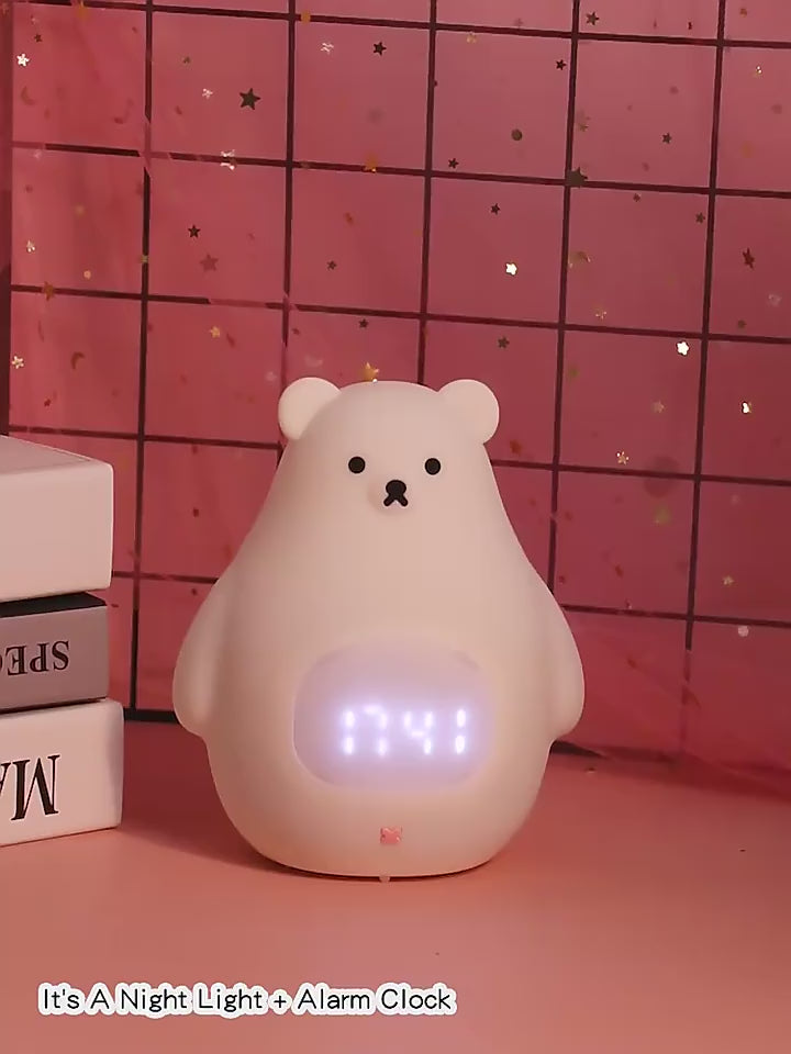 Discover the charm of our kawaii Great White Bear LED Night Light, that doubles as an alarm clock!